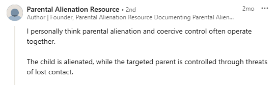 Do they use the language of coercive control but only apply it to “alignment” or “manipulation” of the child by one parent to reject the other one?